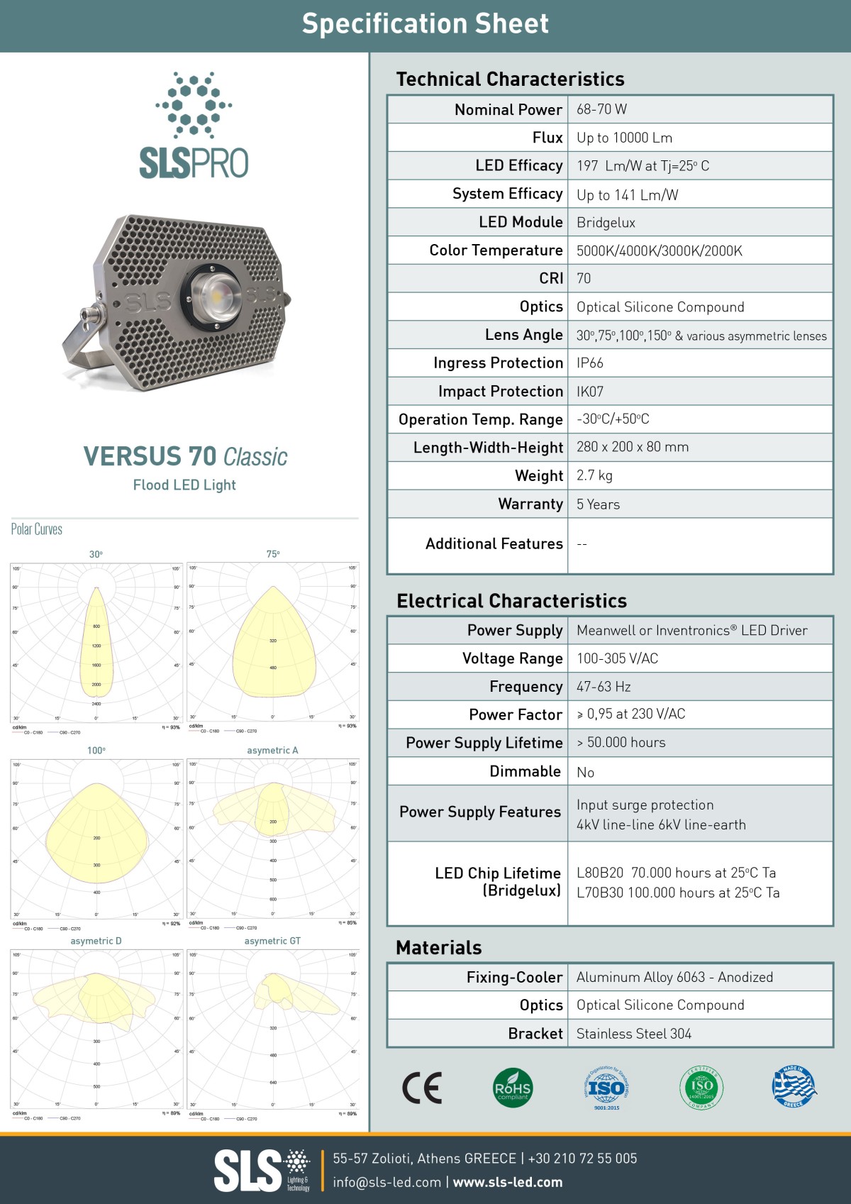 O Versus 70 Classic είναι προβολέας τεχνολογίας LED, που συνδυάζει την αντοχή, την υψηλή απόδοση και την αξιοπιστία.